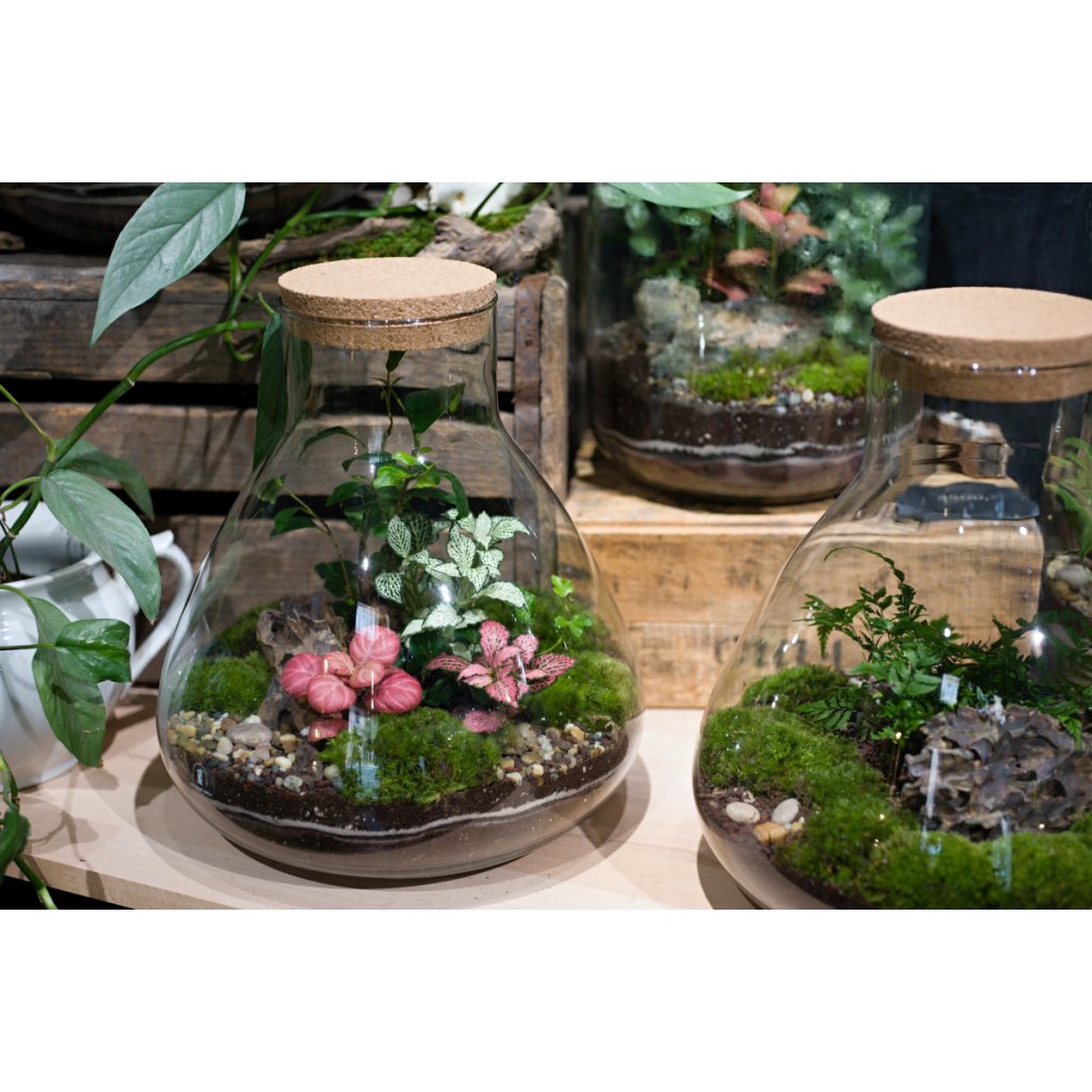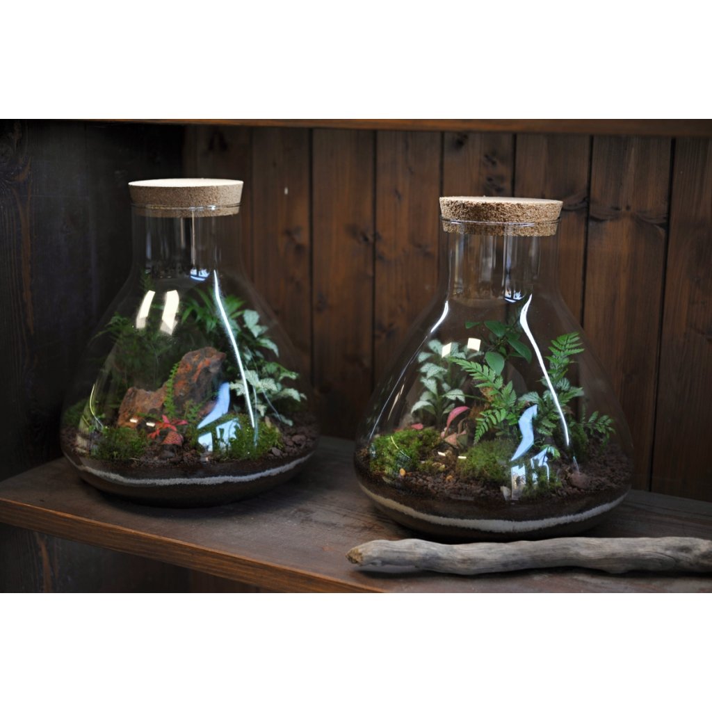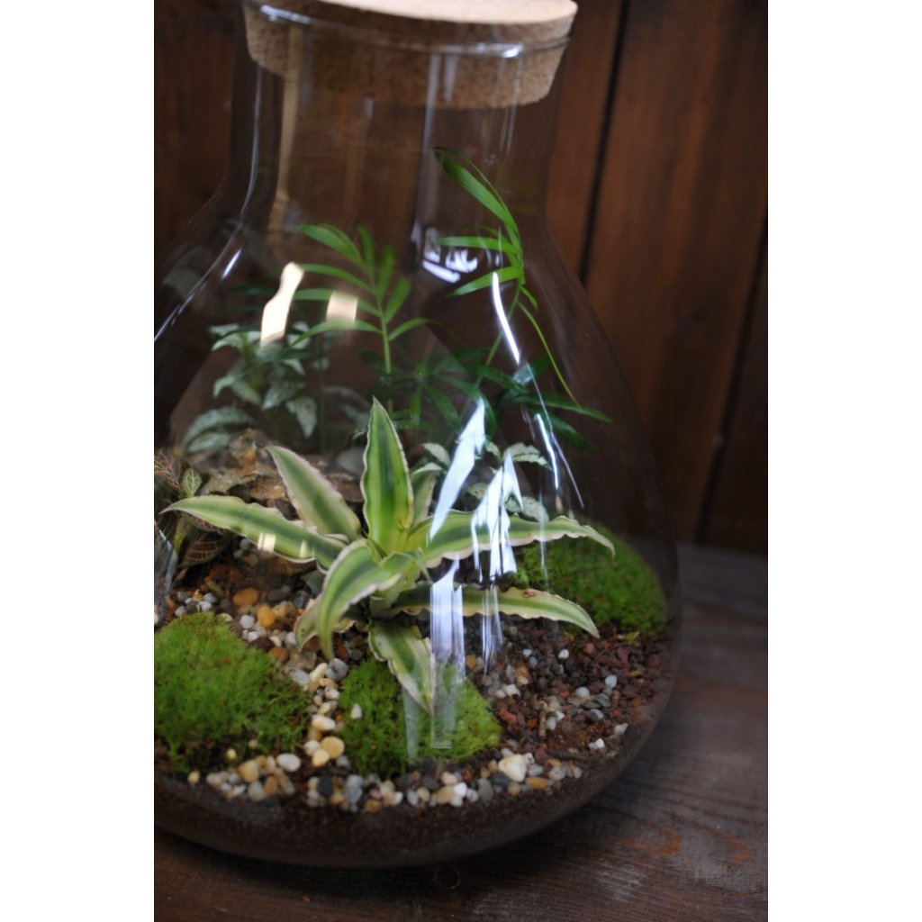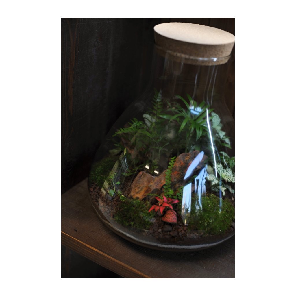 Velká nádoba o velikosti 33x30 cm. Mechárium si můžete zakoupit přes e-shop a vybrat si až při osobním převzetí na místě. Každé mechárium je unikát, fotky jsou pouze ilustrativní. Aktuálůně dostupné varianty najdete v kamenném obchodě.