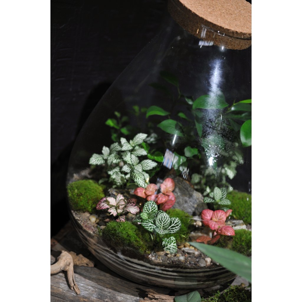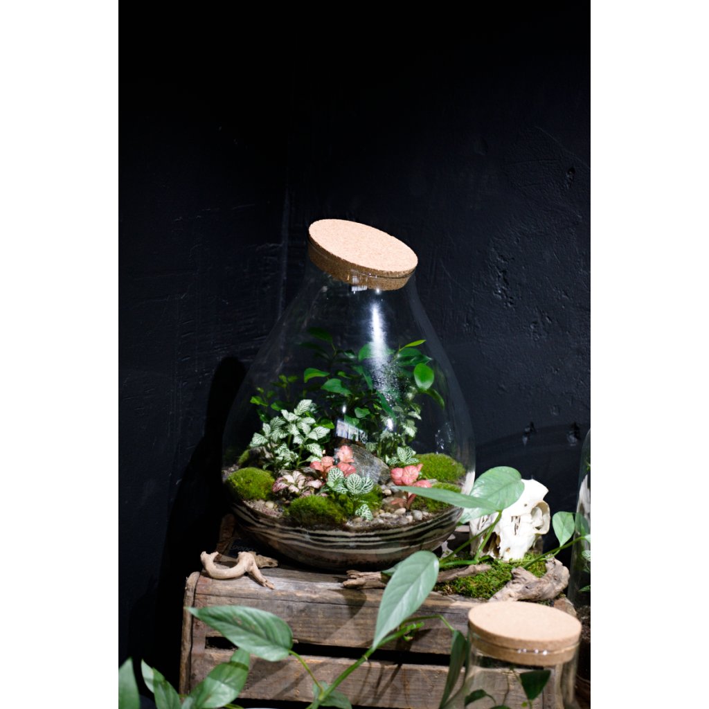 Naprosto úchvatný solitér - moje největší rostlinné terárium s korkovým víčkem, celková výška cca 45 cm, elegantní organický tvar, ladné křivky a spousta místa na malou džungli. Přijďte si vybrat osobně, každé mechárium je unikát...