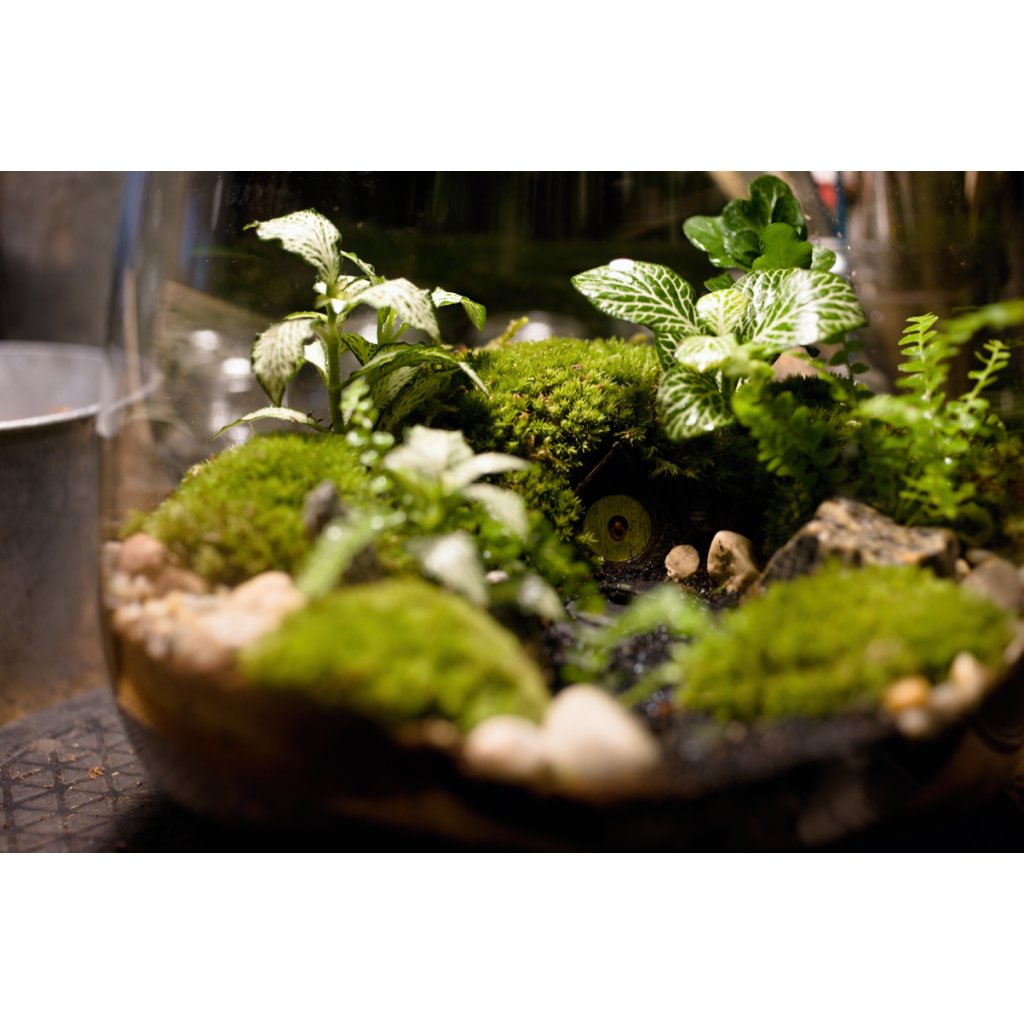 Originální skleněná nádoba o velikosti 24x25cm s velkým otvorem zvrchu, díky kterému je ošetřování rostlinek pohodlné a dostupné i bez speciálního nářadí. Součástí je skleněné nebo korkové víčko (dle aktuální dostupnosti). Mechárium si můžete zakoupit přes e-shop a vybrat si až při osobním převzetí na místě.