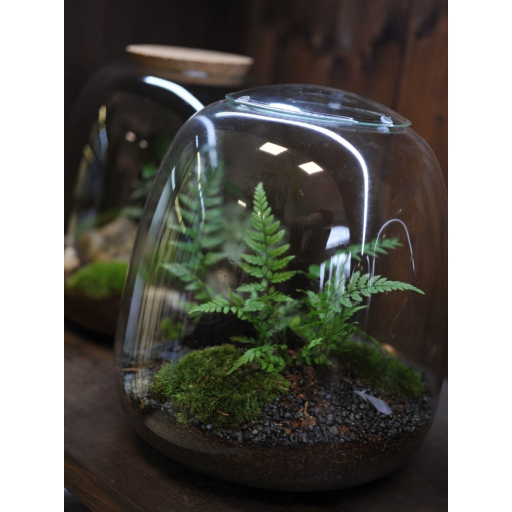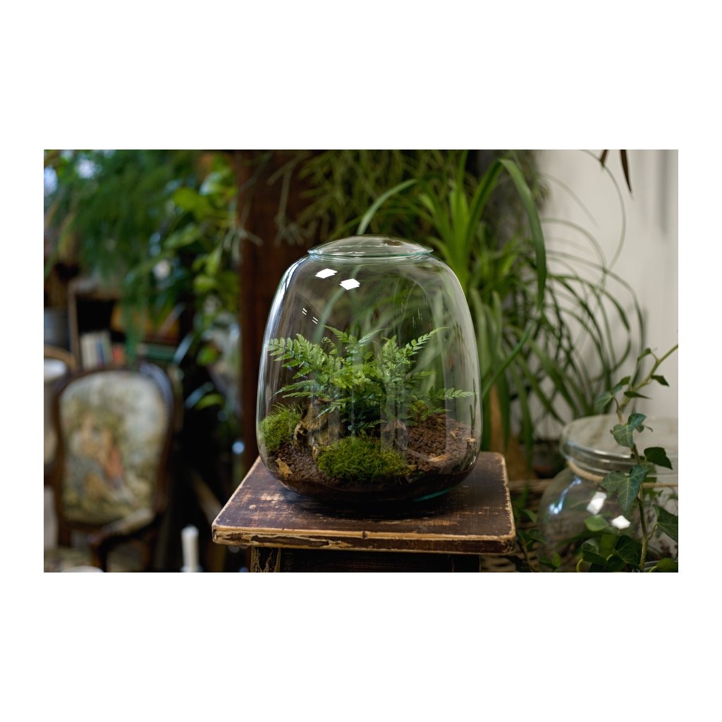 Jedinečná skleněná nádoba o velikosti 24x25cm s velkým otvorem zvrchu, díky kterému je ošetřování rostlinek pohodlné a dostupné i bez speciálního nářadí. Součástí je skleněné nebo korkové víčko (dle aktuální dostupnosti). Mechárium si můžete zakoupit přes e-shop a vybrat si až při osobním převzetí na místě.