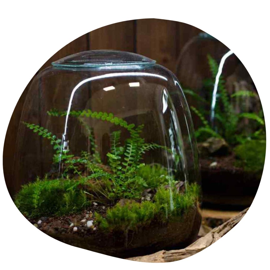 "Minimalistické mechárium, kde hraje hlavní roli mech a kapradí. Jen se na chvilku zastavte, zavřete oči a vdechněte do plic tu svěží vůni lesa... V mžiku se ocitnete na zeleném mechovém paloučku. A pokaždé, když se na něj doma podíváte, vás znovu zastaví, zpomalí a vyladí vám den."