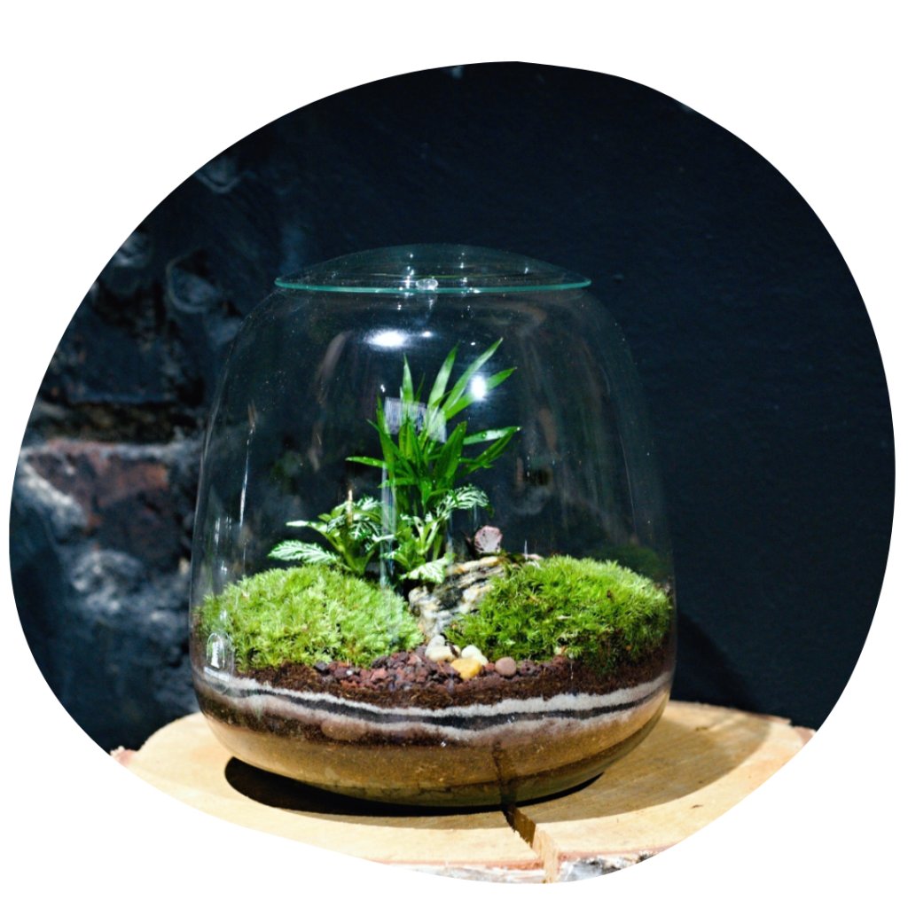 Originální skleněná nádoba o velikosti 20x20cm osázená v různém stylu. Součástí je skleněné nebo korkové víčko (dle aktuální dostupnosti). Mechárium si můžete zakoupit přes e-shop a vybrat si až při osobním převzetí na místě.