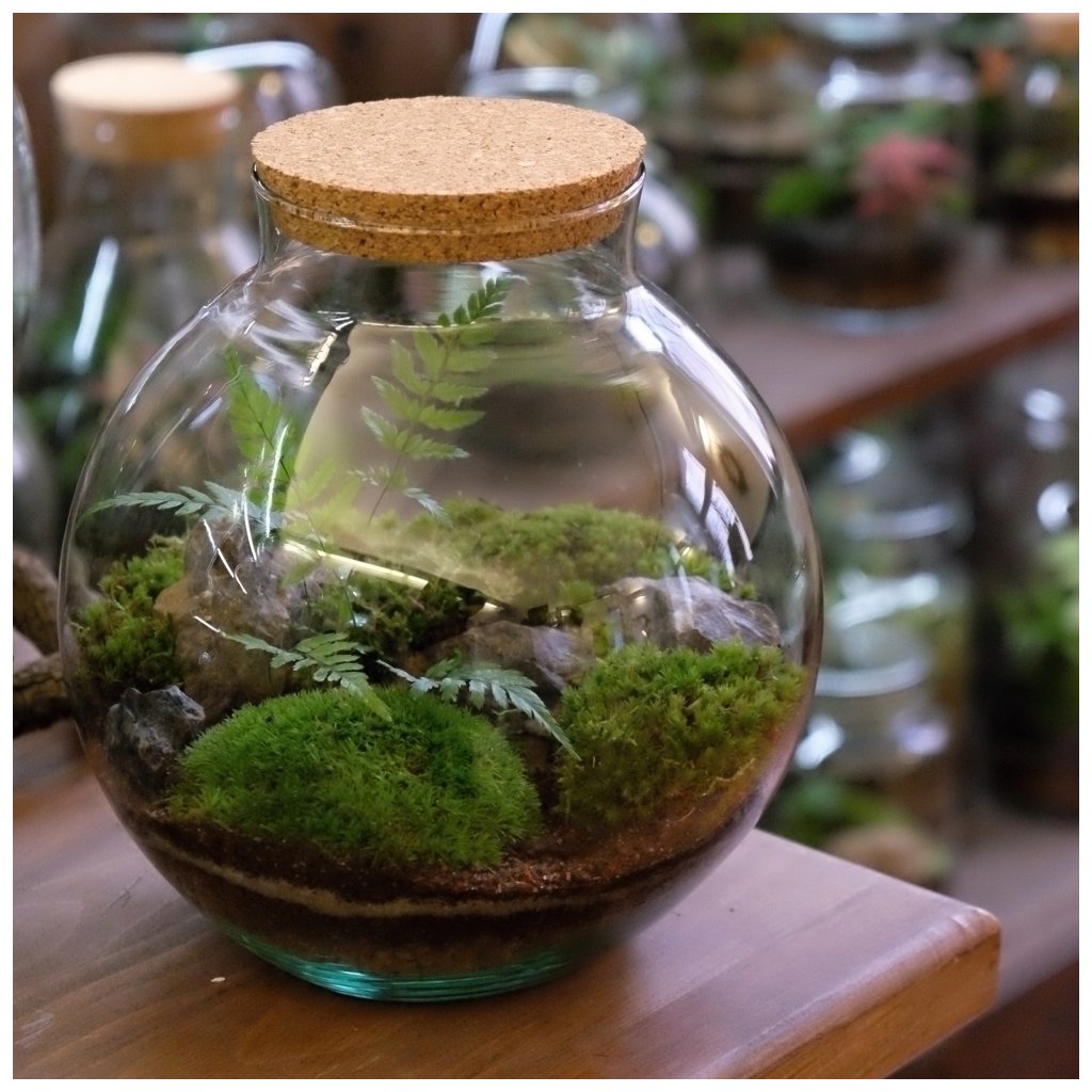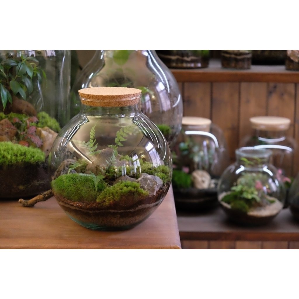 Skleněná koule o velikosti 22x22cm s velkým otvorem zvrchu, díky kterému je ošetřování rostlinek pohodlné a dostupné i bez speciálního nářadí. Mechárium si můžete zakoupit přes e-shop a vybrat si až při osobním převzetí na místě.